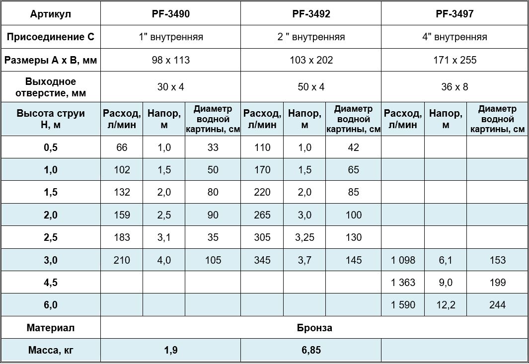 Высота струи max, м