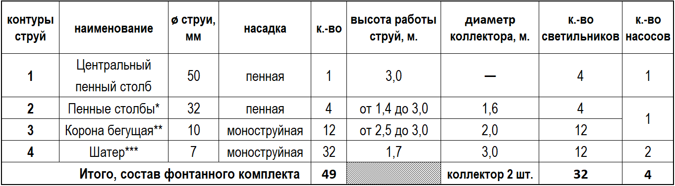 ОПИСАНИЕ ФОНТАННОГО КОМПЛЕКТА ПО КОНТУРАМ