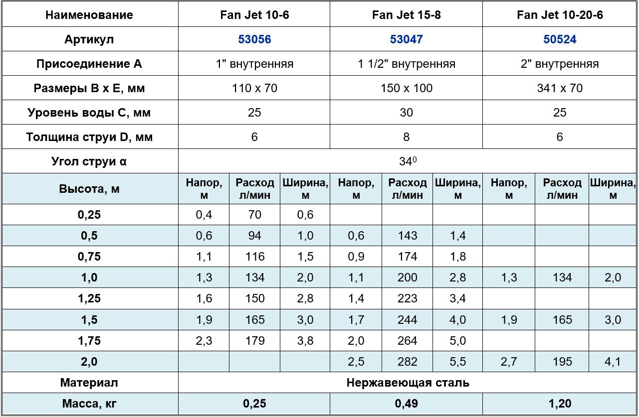 Фонтанная насадка Fan Jet 15-8 E